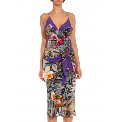 1MORPHEW COLLECTION Purple & Grey Multicolored Silk Twill Jungle Print Scarf Dress Made From FENDI Vintage Scarves