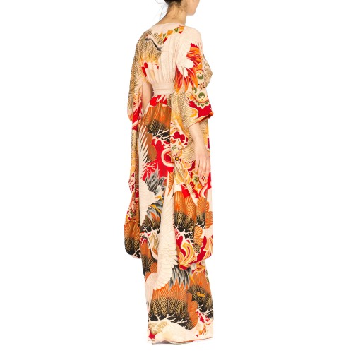 1MORPHEW COLLECTION Hand Painted Silk Wrap Dress Made From An Antique 1920S Japanese Kimono