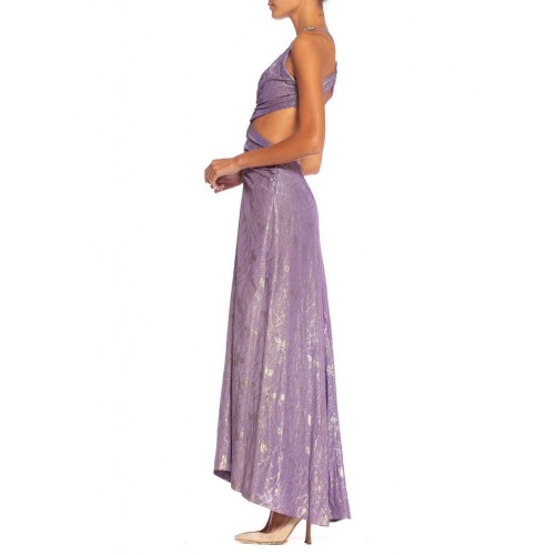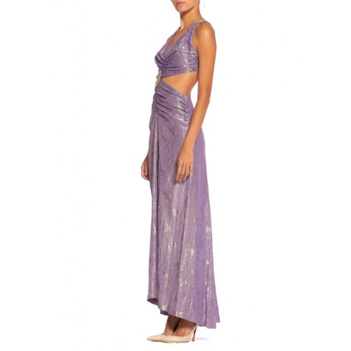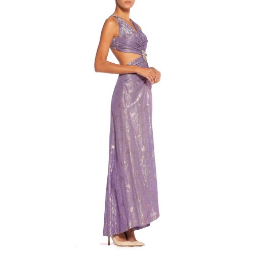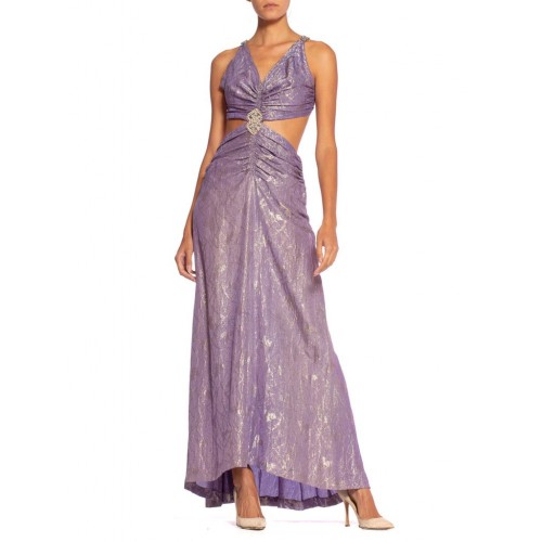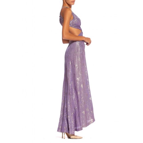 1MORPHEW ATELIER Lilac Silver Antique Silk Lamé Gown With 1930S Crystals